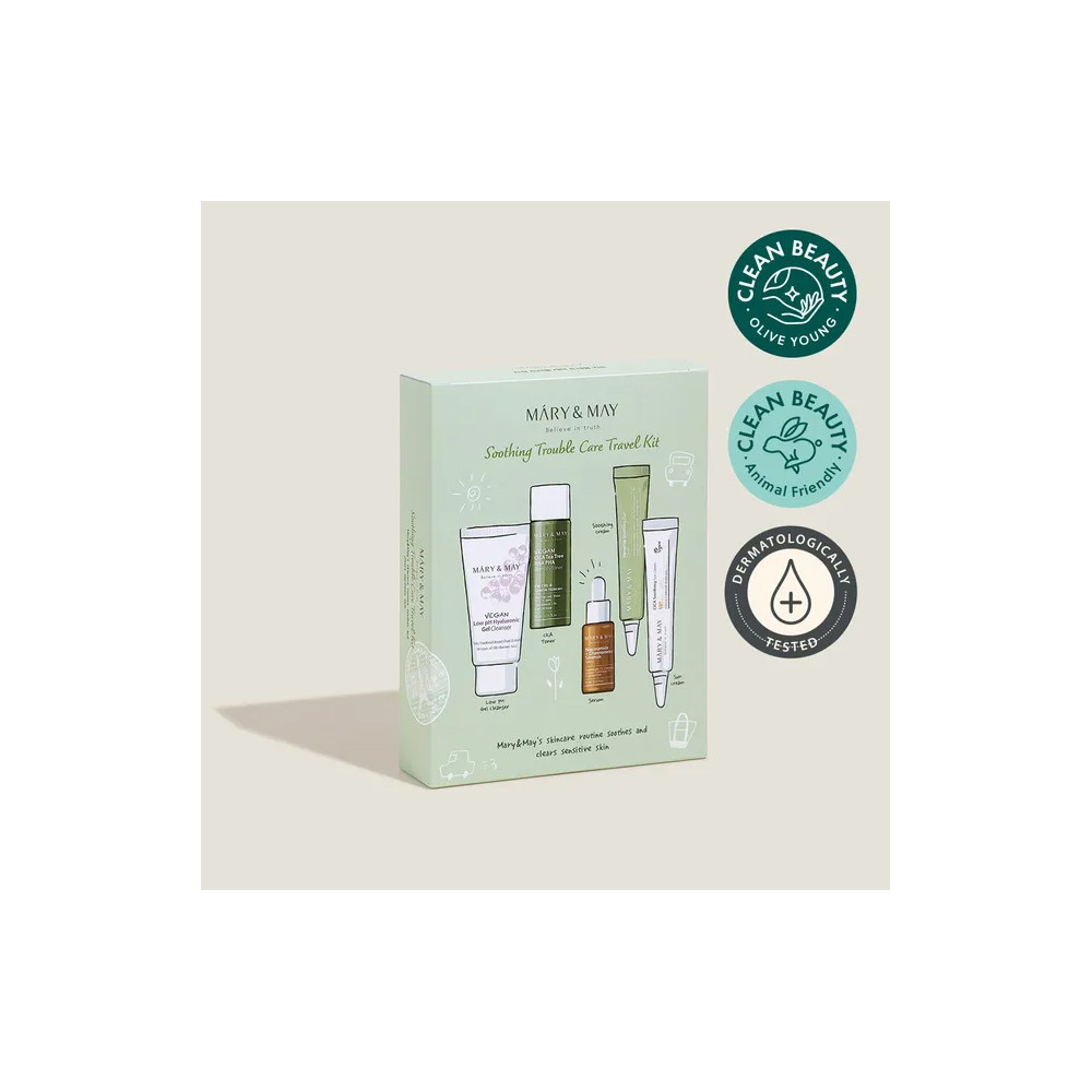 Mary & May Soothing Trouble Care Travel Kit (toner+serum+cream+suncream+gel Cleanser) 230g