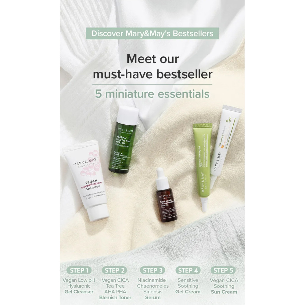Mary & May Veganes Hautpflege-Reiseset (5 Schritte, Minigrößen)