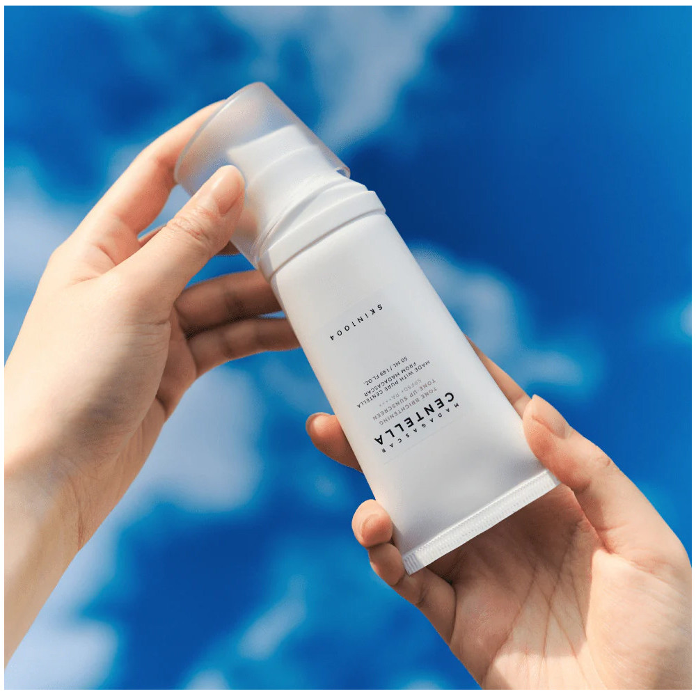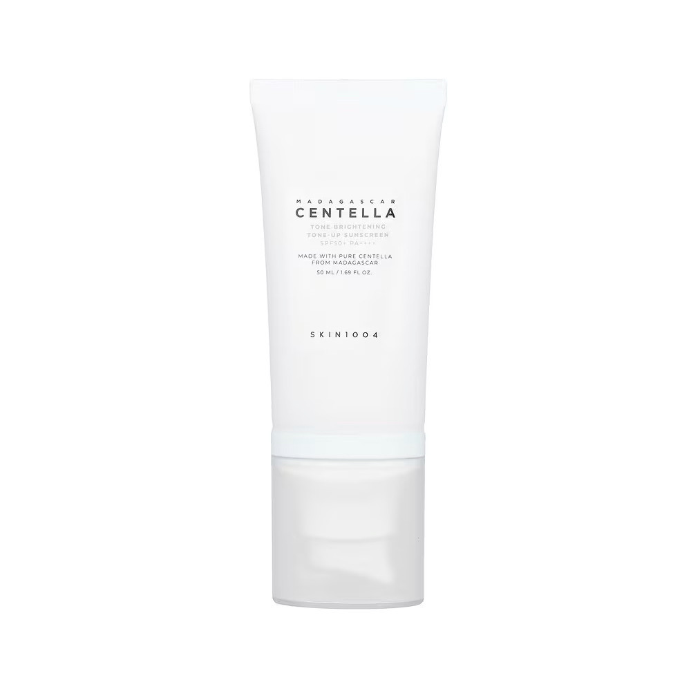 Der Skin1004 Madagascar Centella Tone Brightening Tone-Up Sunscreen ist ein leichter, pfirsichfarbener Sonnenschutz, der SPF 50+ PA++++ bietet und gleichzeitig einen ungleichmäßigen Hautton korrigiert. Mit Madewhite™ und Niacinamid hellt sie den Teint auf und gleicht ihn aus - für ein gesundes, strahlendes Aussehen.