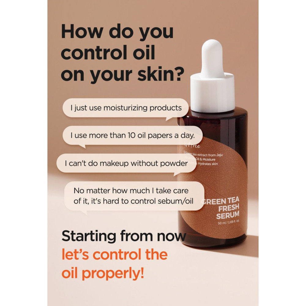 Isntree Green Tea Fresh Serum - Grüntee-Serum aus Jeju mit EGCG, das den Fett- und Feuchtigkeitsgehalt der Haut ausgleicht, Talg kontrolliert, Reizungen lindert und die Haut frisch, klar und strahlend macht.